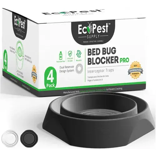 ECOPEST Interceptores de Chinches – Paquete de 4 | Bed Bug Blocker (Pro) Trampas Interceptoras (Negro) | Trampa de Insectos, Monitor y Detector para Las Patas de la Cama
