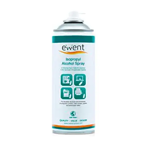 Ewent EW5611 – Alcohol Isopropílico en Spray – 400 ml – Libre de Cloro – Seguro para Plásticos – Limpia Contactos Electrónicos y Carcasas de Ordenadores – No Afecta la Capa de Ozono