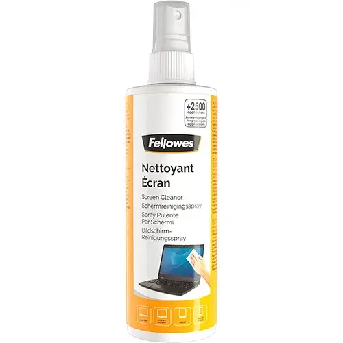 Este spray de Fellowes es ideal para la limpieza de pantallas de ordenadores, televisores y otros dispositivos electrónicos. Viene en un formato de spray de 250ml y es sin alcohol, por lo que es seguro para usar en todo tipo de superficies.