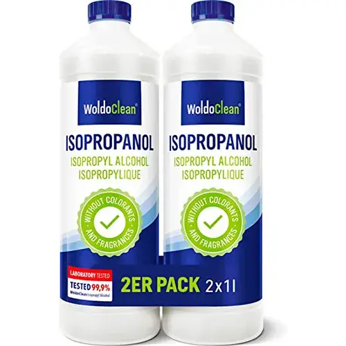 El alcohol isopropílico 99,9% de WoldoClean es perfecto para la limpieza de componentes electrónicos, objetivos y pantallas. Viene en un formato de 2 botellas de 1 litro para un total de 2 litros.